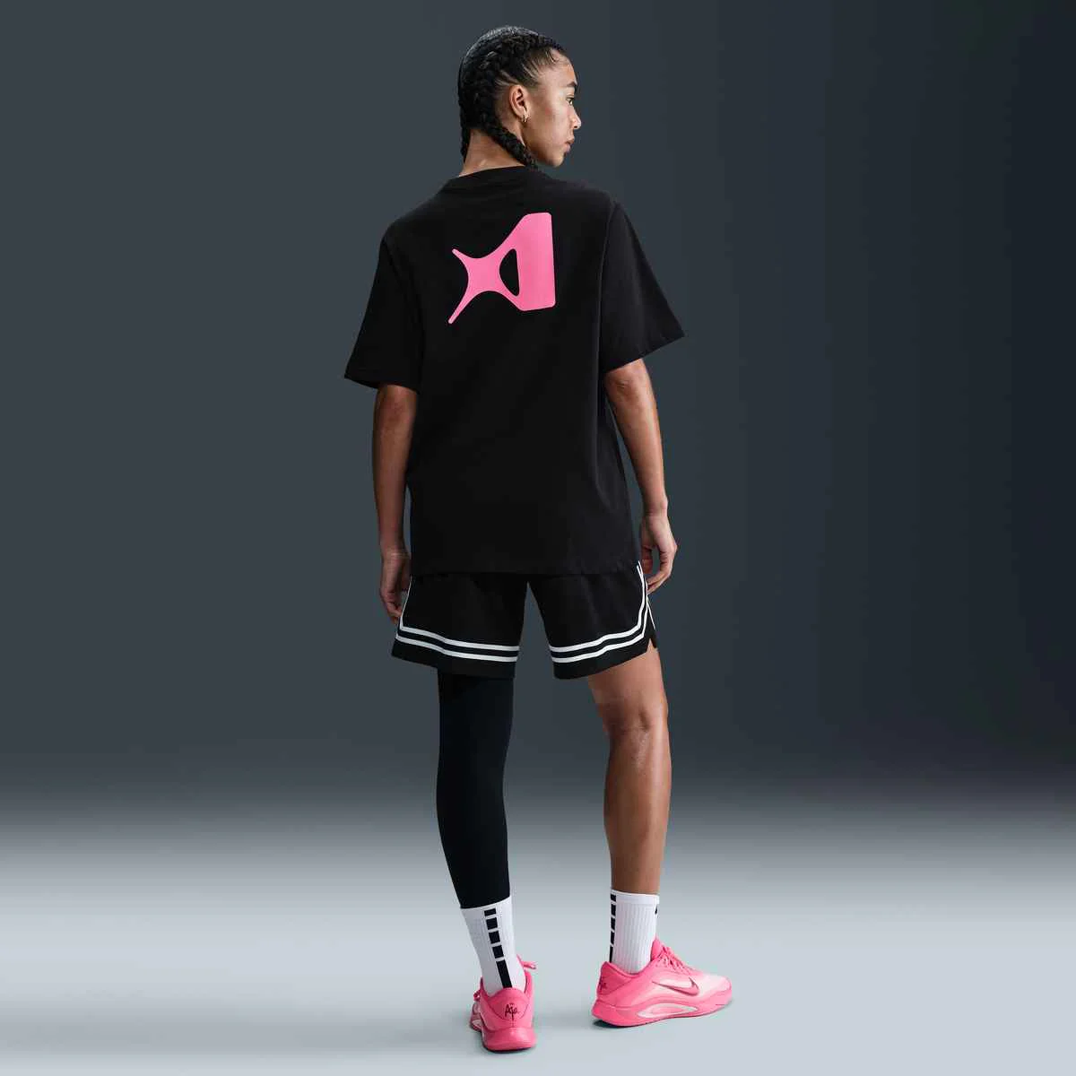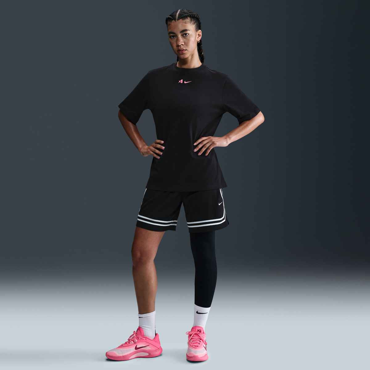 Ispirati allo stile inconfondibile di A’ja Wilson, questi leggings incarnano un’attitudine forte e senza compromessi. Il design asimmetrico a gamba singola assicura maggiore sostegno sul lato sinistro, proprio come nel modello indossato da A’ja. Realizzati con tessuto liscio e ad asciugatura rapida, mantengono la pelle fresca anche nei momenti di gioco più intensi.