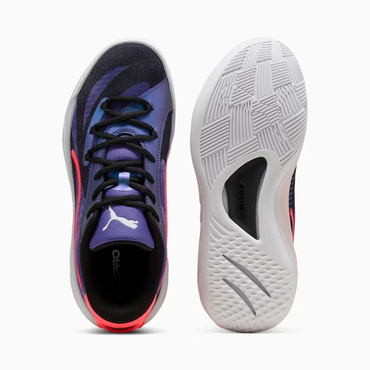 Le scarpe da basket All-Pro NITRO di Puma sono dotate di tecnologia ad alte prestazioni con un’intersuola in schiuma NITRO™ che garantisce massima ammortizzazione e un ritorno di energia impareggiabile.