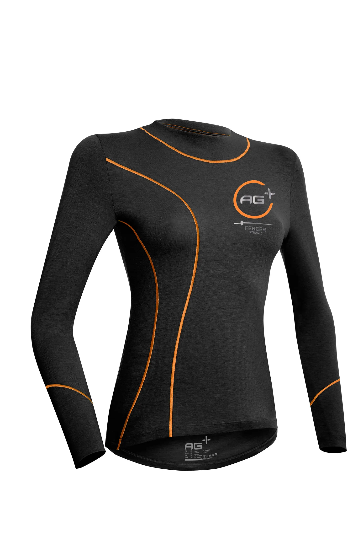 AG+ Indossa l’Argento per vincere l’Oro Assalto dopo assalto la fatica si fa sentire, ed anche il sudore! Il rimedio a tutto ciò è la T- shirt AG+ a manica lunga in fibra d’argento. Un metallo antico come la scherma ma dalle proprietà miracolose. Antibatterico, Termoregolatore e ad azione antiodore. Il confort si unisce ad uno stile tutto al femminile! TABELLA TAGLIE
