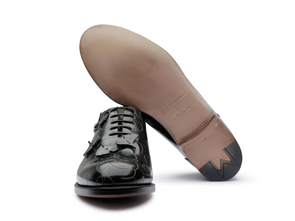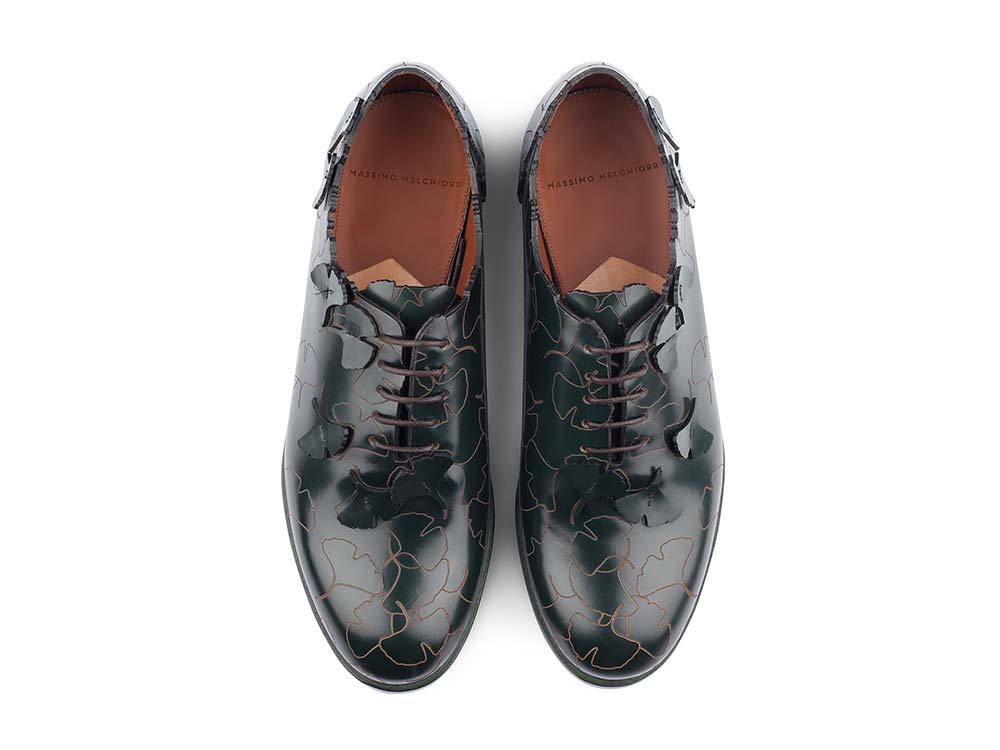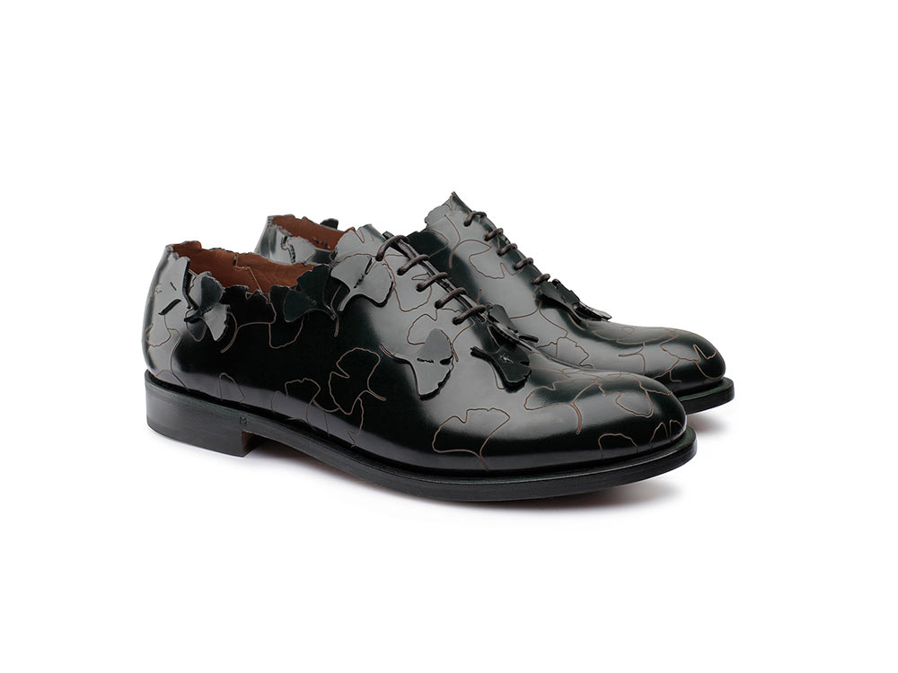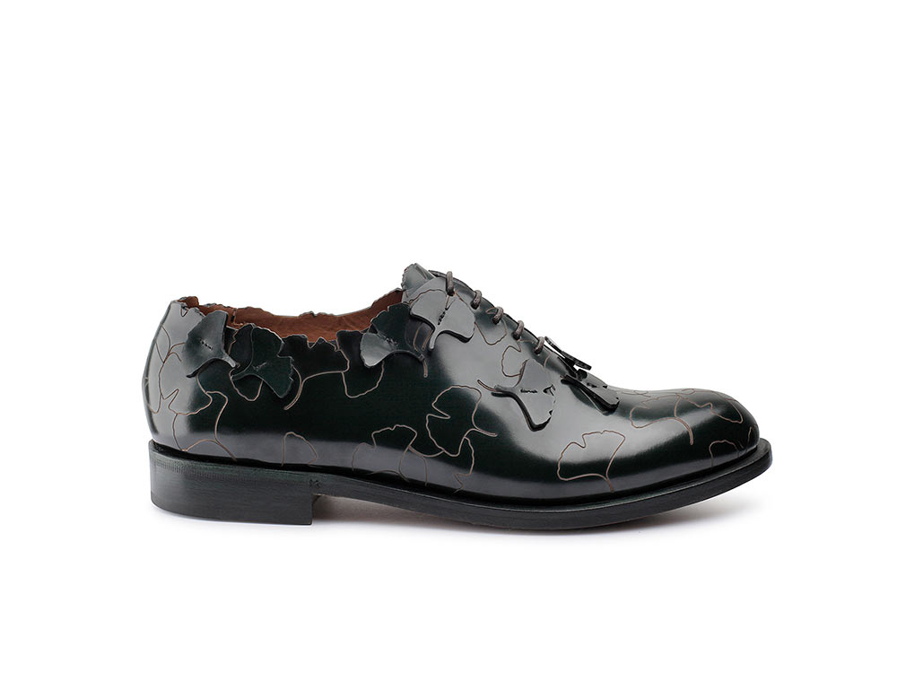 DESCRIZIONE Stringata modello oxford in vitello abrasivato. Un modello essenziale arricchito dall'esclusivo motivo ginko biloba inciso sulla tomaia, reso tridimensionale dalle foglioline applicate a mano per una calzatura raffinata, esclusiva e ricca di dettagli. + pelle di vitello + Lavorazione Blake + suola in cuoio + made in Italy + Spedizione gratuita in tutto il mondo var stile = “top=100, left=100,status=no,width=1025,height=600,resizable=yes,scrollbars=yes”; function Popup(apri) {window.open(apri, “”, stile);} Guida alle taglie