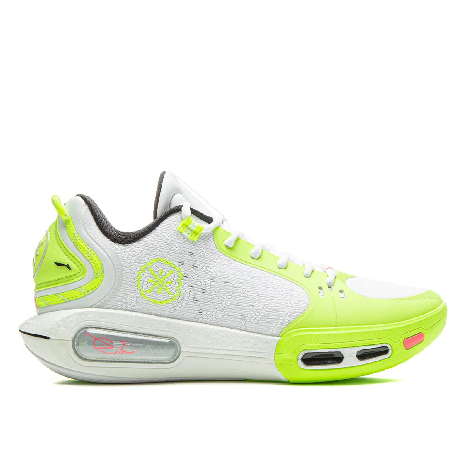 - Gli elementi Way of Wade sono posizionati sulla tomaia, sul tallone e sulla suola. Il tallone sinistro è contrassegnato con “MAKE YOUR OWN WAY” e quello destro con “CAUSE IT’S HARD”.