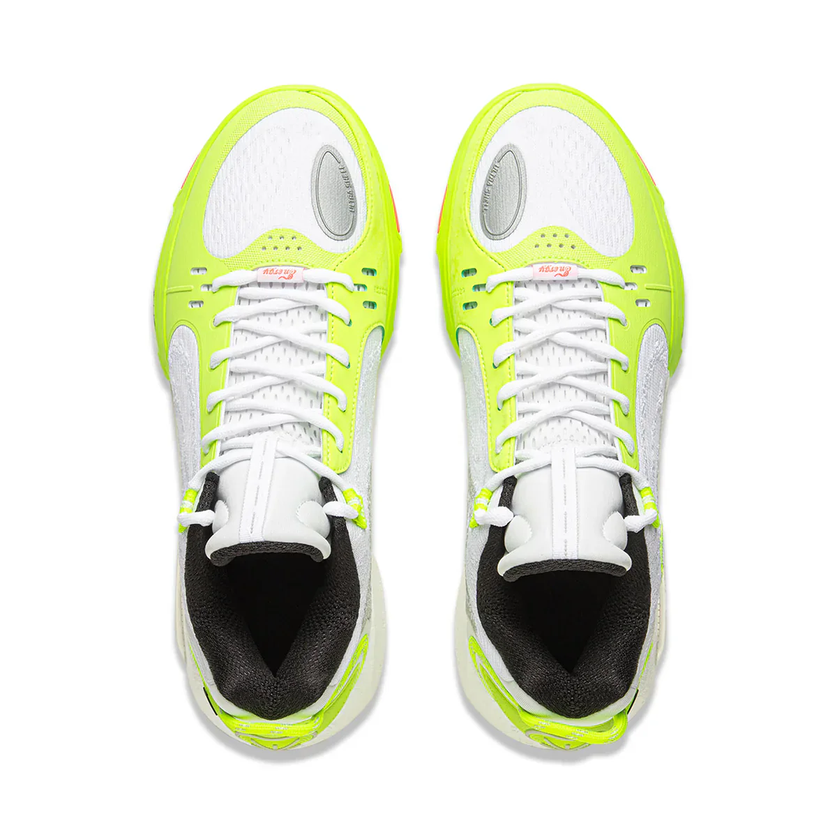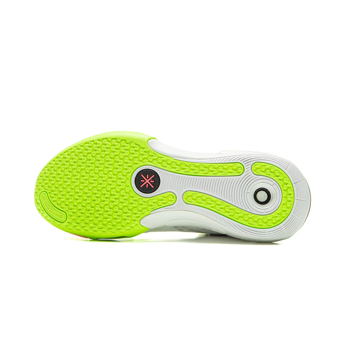 - L’elemento anti-torsione in TPU, che si estende dal tallone all’avampiede, garantisce rigidità torsionale, mentre la punta con un angolo di inclinazione relativamente ampio favorisce una migliore trasmissione di energia, consentendo salti potenti e partenze più veloci.