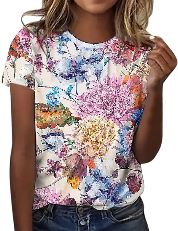 T Shirt Donna Firmate Basic Manica Corta Camicia Curvy Sportiva Estiva Magliette Cotone Fantasia Blusa T Shirt Elegante Tshirt Top Casual con Stampa : …