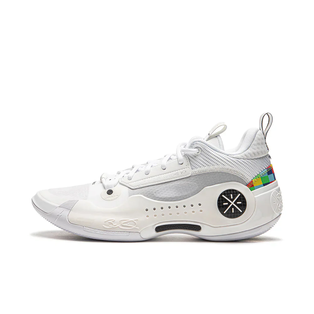 La straordinaria scarpa da basket Wade 10 Low “Pixel” è dotata di una sofisticata piastra in carbonio curva a tutta lunghezza ed è perfetta per giocatori veloci in cerca di un prodotto leggerissimo e super reattivo.